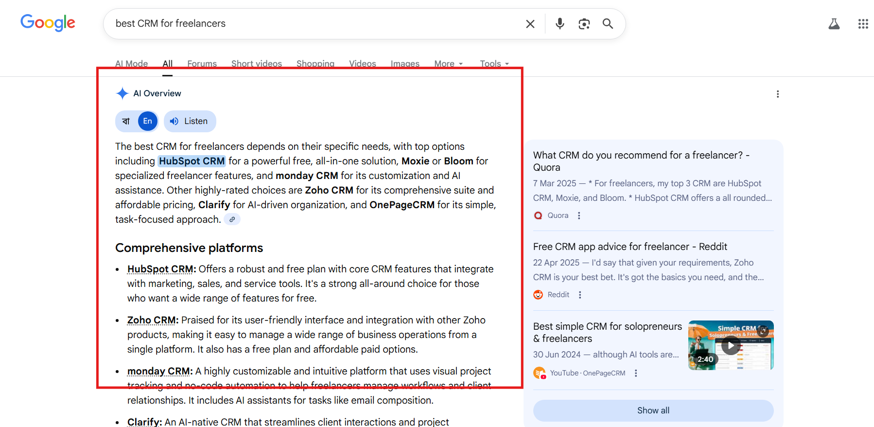 But with AI in the picture, things have now changed. Users no longer browse through the top-ranking websites for their query. They get it all ready-made in one optimized summary. This is what it looks like: