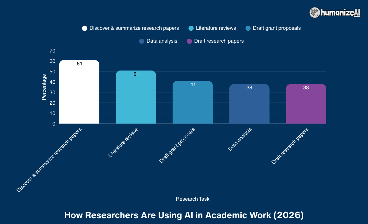 - 61% of researchers use AI to discover and summarize academic papers.