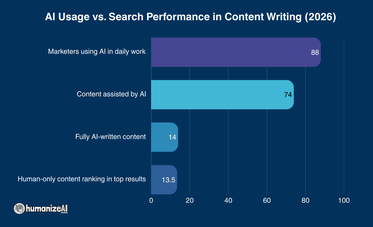 | Human-only content ranks highly | 13.5% | Performance depends on intent. |