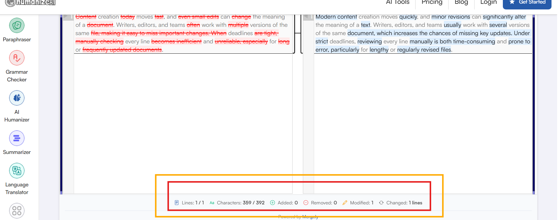 This is more of an added advantage than a step of relying on a tool like HumanizeAI.io’s Text Compare. You get to track all the necessary edits or changes in one dedicated slab, making things easier and more convenient for you.
