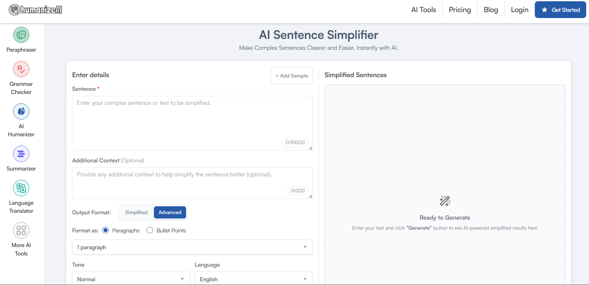 How To Use The Free AI Sentence Simplifier by HumanizeAI.io?