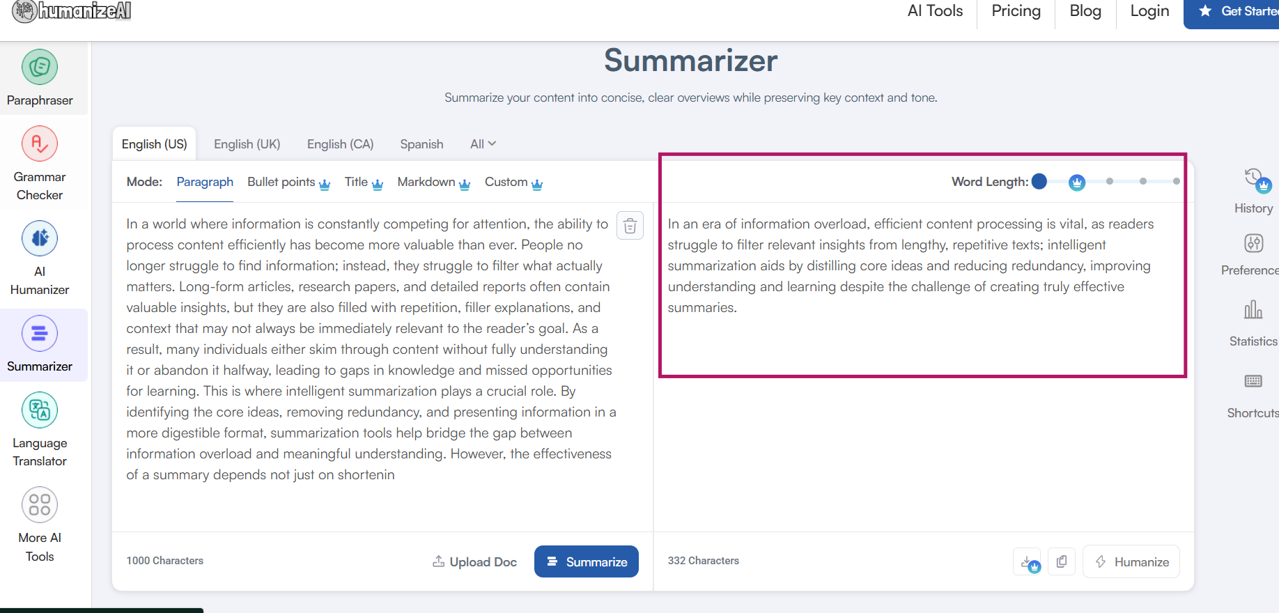 How To Accurately Use The Best Summarizer by HumanizeAI.io