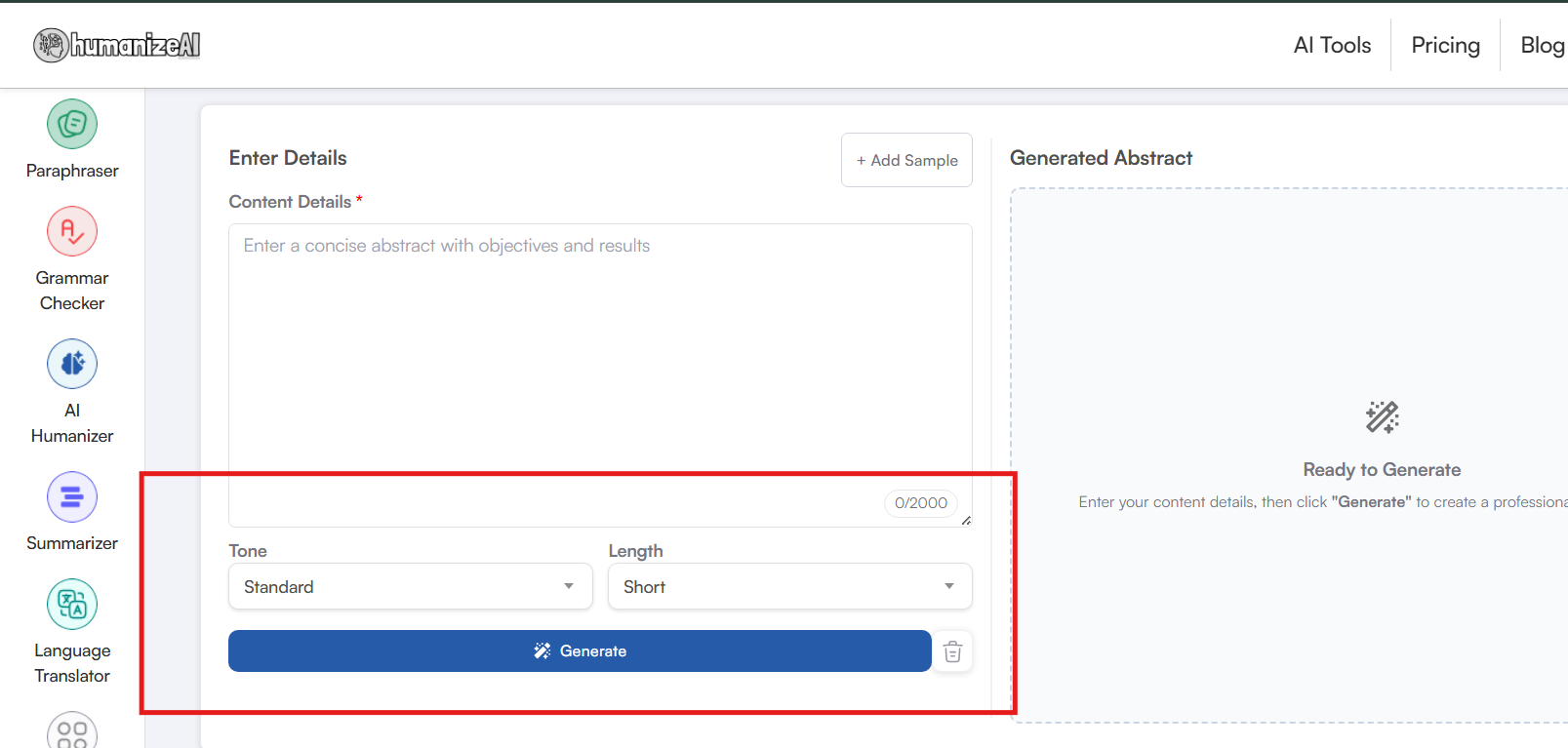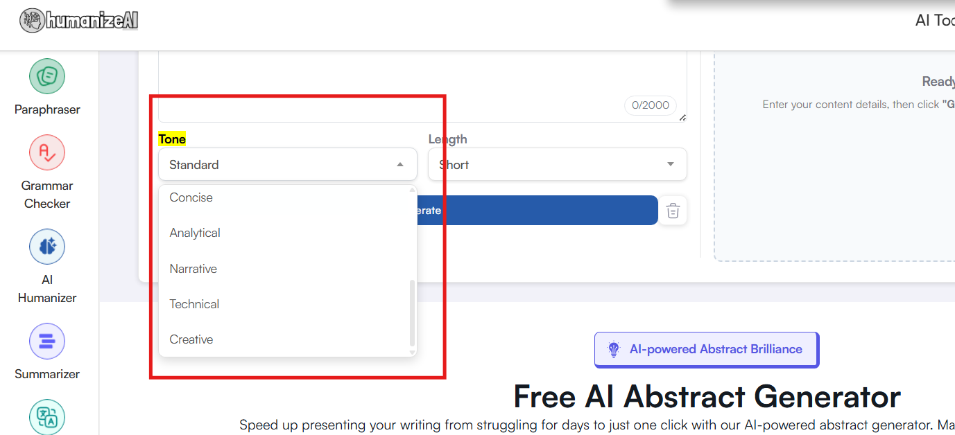 How To Use Humanize AI.io’s Free Online Abstract Generator?