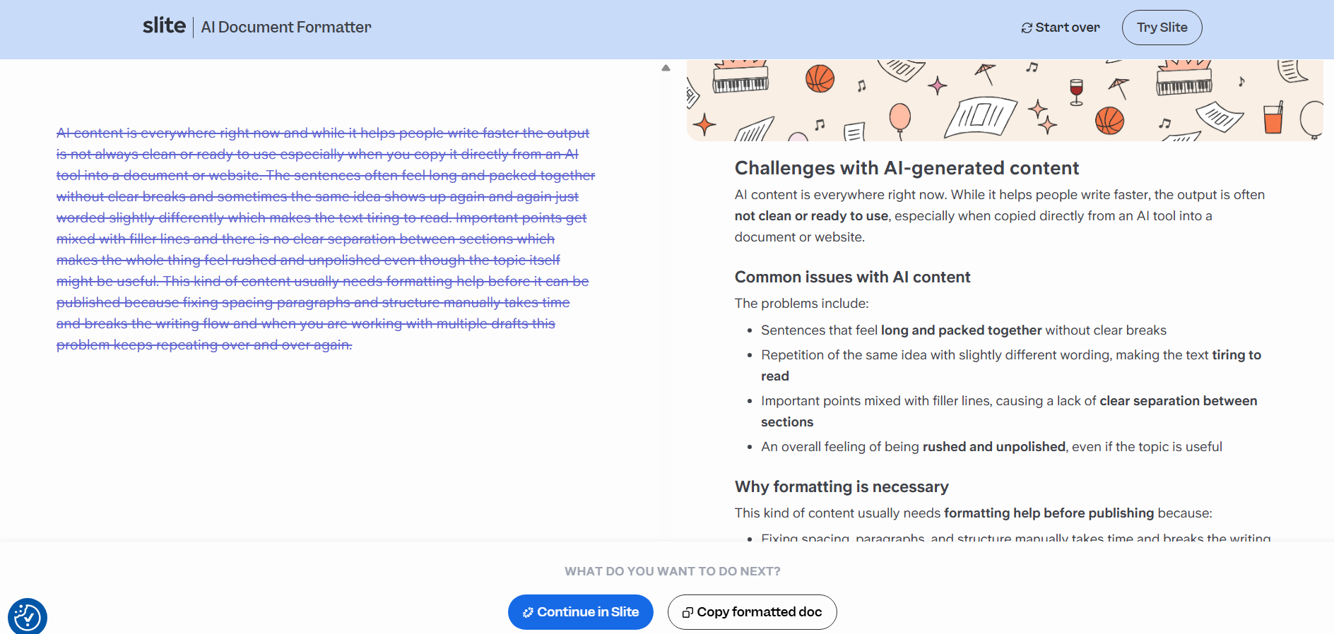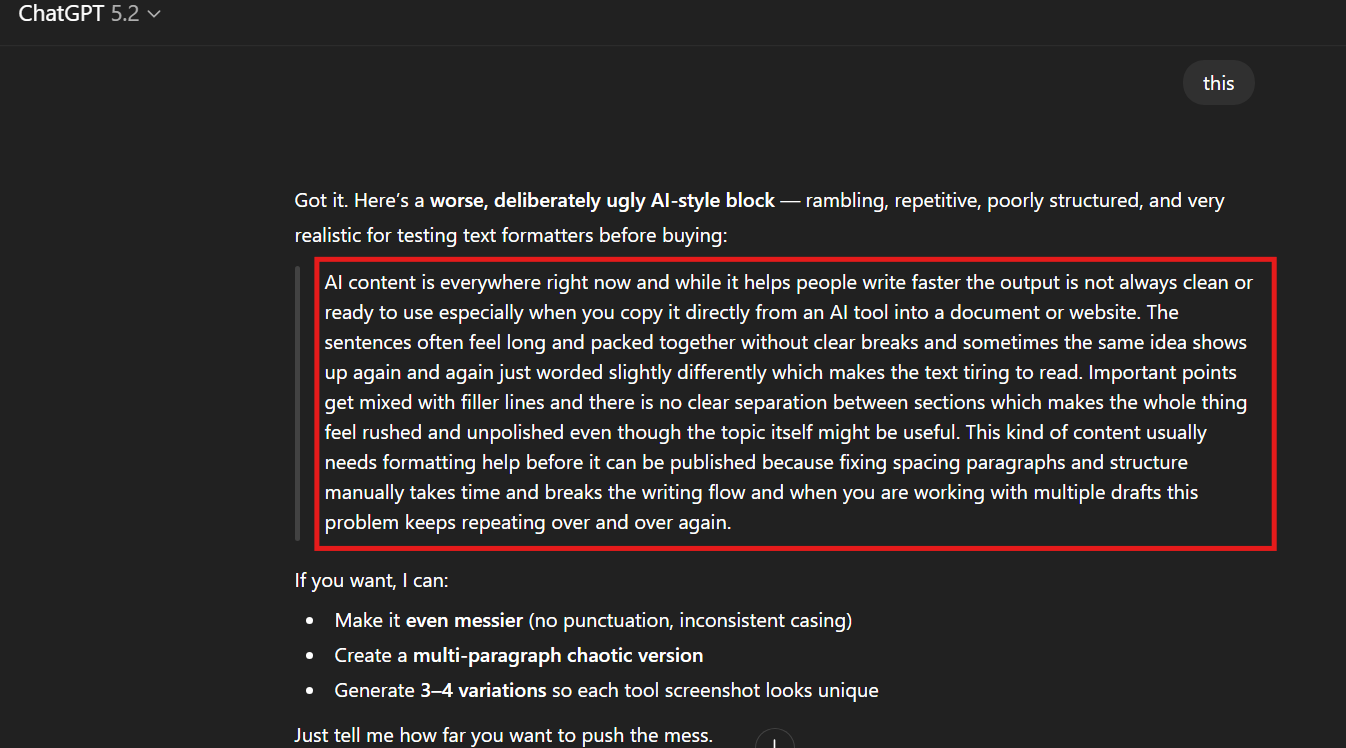 Broken paragraphs, weird spacings misplaced lines, we have all been there. Sometimes it takes an additional hour to fix all this damage while maintaining the creative flow. This is why we trusted AI to do it for us. But even then, there were challenges.