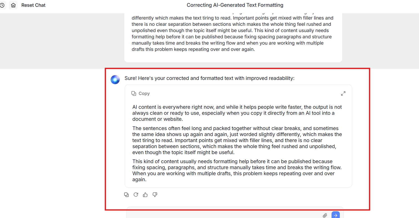 ➥ Applies a more structured, editorial-style layout for the ChatGPT-generated text.