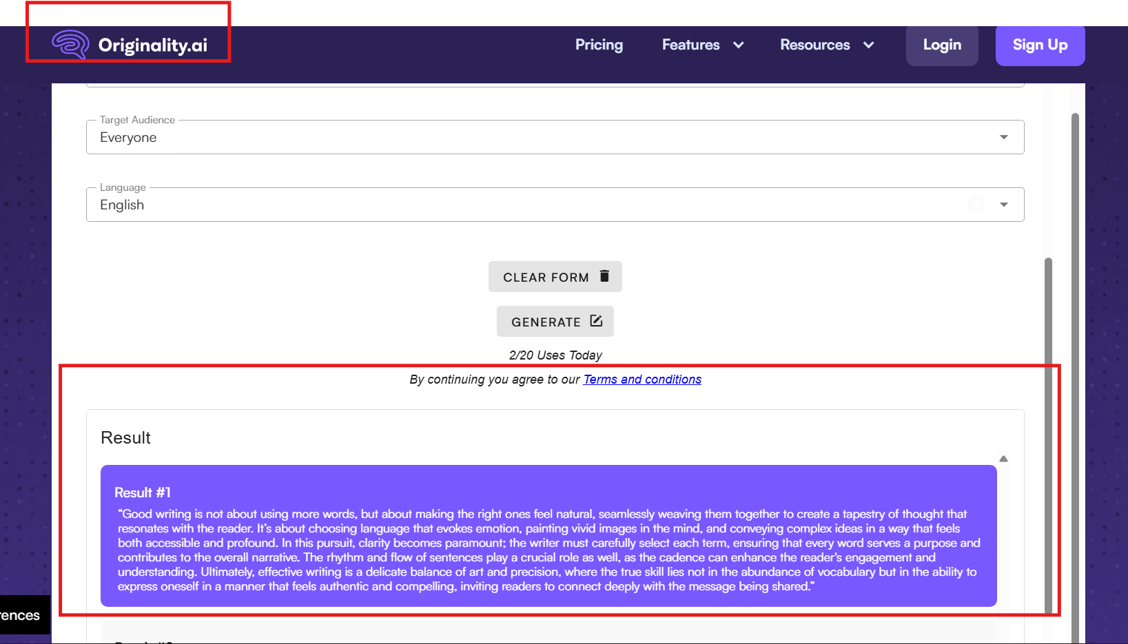 Another big and well-known name on the list, Orginality.ai, rarely disappoints with its setup. You can directly start working the moment you land on the page with no sign-ins or downloads. Along with all these, you get 20 free uses per day with the free version, regardless of the tone or mood you use.